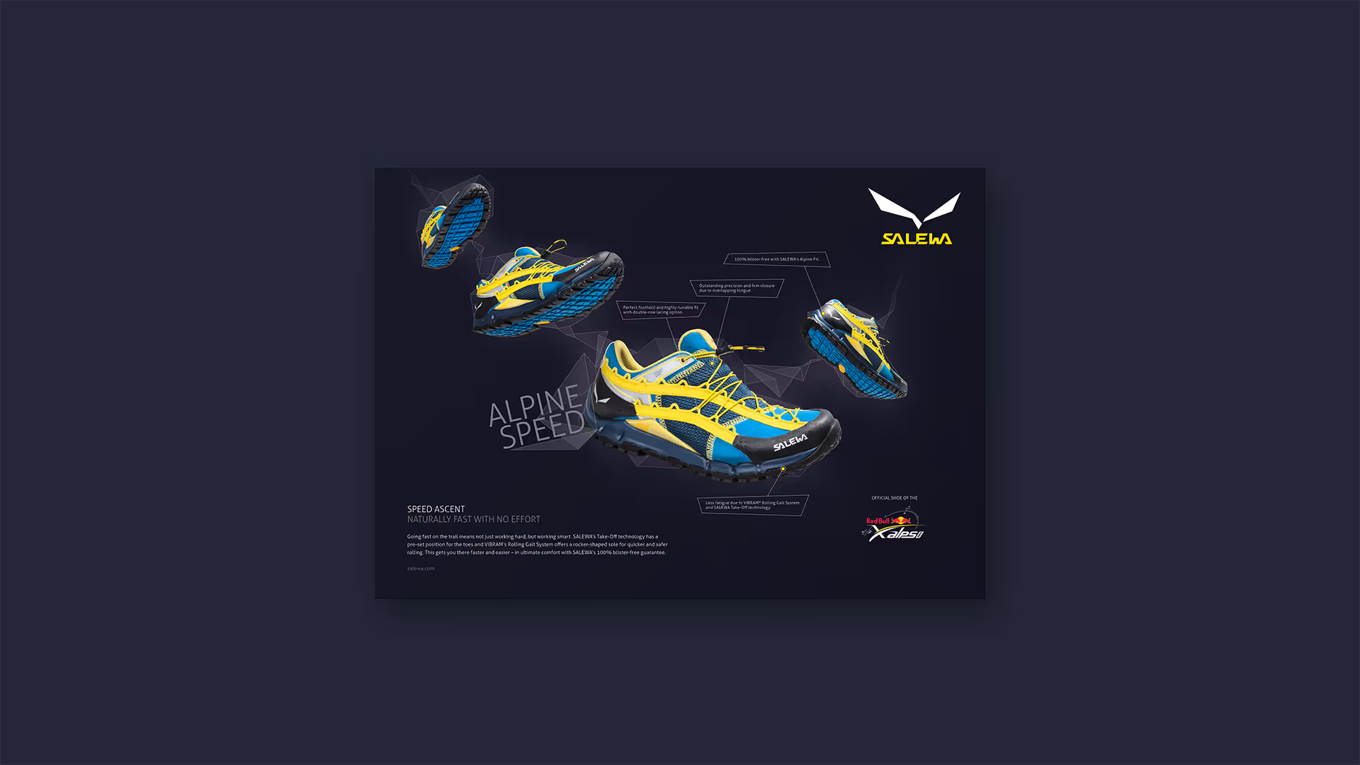 Salewa needed to showcase their technical mountaineering products in a way that captured the dynamic energy and precision of alpine sports. Traditional static product photography couldn't convey the speed, movement, and technical innovation that define their icon products. The challenge was to create visuals that felt alive and authentic to the mountain sports experience while clearly communicating each product's technical features and benefits.